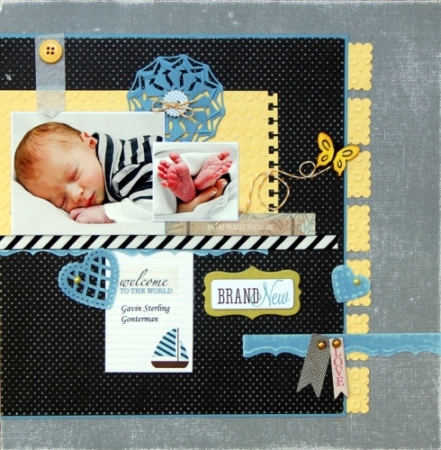 The last one is again Baby Gavin using Bo Bunny papers I ran across while going through my stash - wish I had known they had a DT call out recently - would have loved to try out for that.